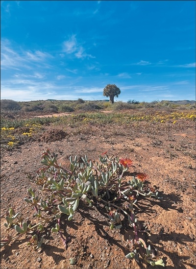 纳马夸兰的泥土中富含铁、锰、锌等矿物资,柔润着1200多种多肉植物,其中近一半是沙漠地带特有的多肉品种(见图二,本报记者邹松摄)。当地日照浓烈,多数多肉笼罩的地域呈现出色调各样的花海。止境是每年的7、8月份,纳马夸兰幽闲的沙地里洪水横流的花朵纷纷洞开,淡蓝的鸢尾花,金色的野百合,黄色、红色、紫色的非洲菊以及各样叫不上名的野花,稀疏大地化身为万亩花田。依照纳马夸兰地区旅客中心的说法,这里的花儿颇具“灵性”,逐日最好不雅花时段上昼10时到下昼4时之间,其他时段花儿“放工”。还有一种名叫“二歧芦荟”的树木,其树干被掏空后狭窄而结子,当地原住民将其干燥管制后制作成箭筒,“箭袋树”的名字由此而来。记者驱车曾路过“箭袋树”丛林,奇异的景不雅让东谈主仿佛跻身于电影《阿凡达》的场景中。